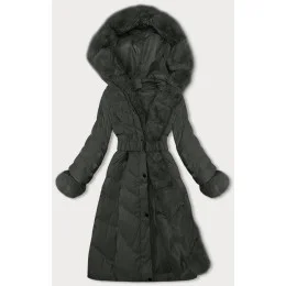 Dámska zimná bunda v army farbe s opaskom (5M3156-136)