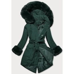 Tmavozelená dámska zimná bunda s opaskom (f7039-4)