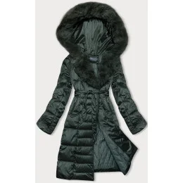 Tmavo zelená dámska zimná bunda s opaskom S'west (B8195-10)