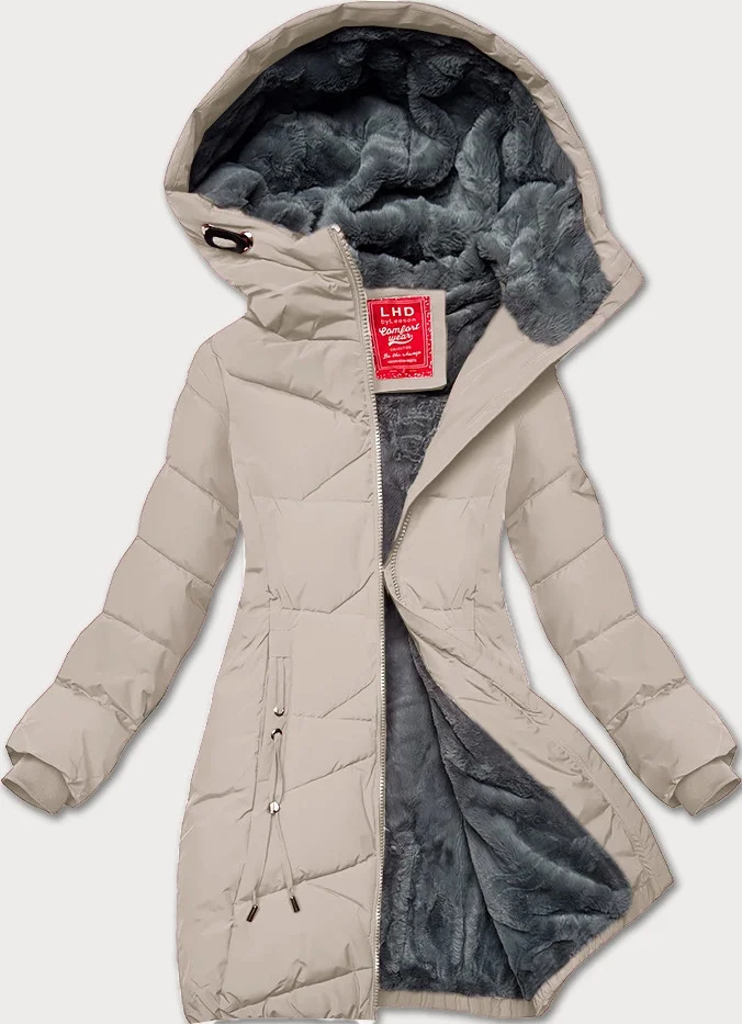 Svetlo béžová dámska zimná bunda so sťahovacím lemom LHD (LHD-24580)
