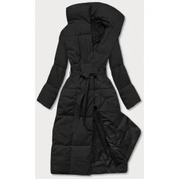 Čierny dámsky zimný kabát s opaskom (2M-061)