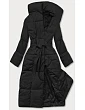 Dámsky zimný kabát s opaskom čierny (2M-061)