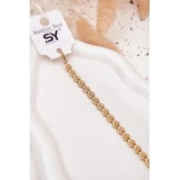 Dámský náramek vyrobený ze zdravotní oceli v zlatém odstínu je elegantní doplněk, který dodá lesk každému stylu. Dekorativní spletení mu dodává originální charakter a nastavitelný zapínací systém umožňuje ideálně přizpůsobit náramek zápěstí. Stylový a univerzální – skvěle se hodí jak pro každodenní nošení, tak pro elegantnější outfity.