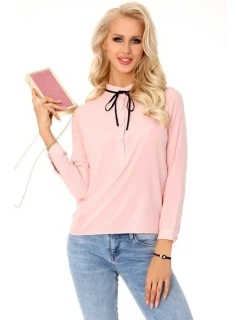 Tunika má volný střih. Výstřih s gumičkou krásně odhaluje ramena. Model má poloviční rukávy se zavazováním. V pase modelu je pásek pro zavazování.