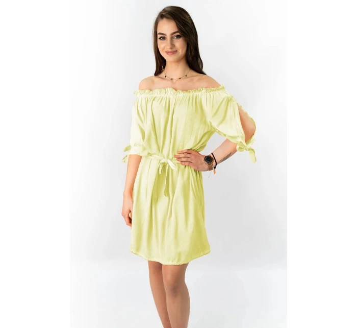 Žlutá dámská tunika ve stylu s páskem model 7231326 - MADE IN ITALY