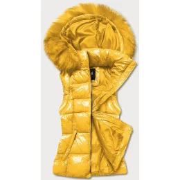 Žlutá dámská vesta s kožešinou model 17673458 - YES!PINK