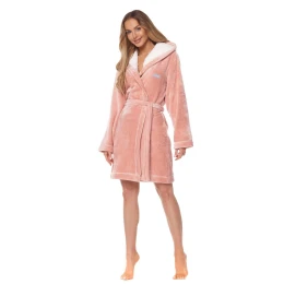 Hřejivý župan meruňkové barvy s nápisem "Hello" na hrudi. Nadýchané a příjemné na dotek. Kapuce podšitá světlou kožešinou. Je měkká a krásná a jistě vám bude dlouho sloužit. Složení: 100% polyester.