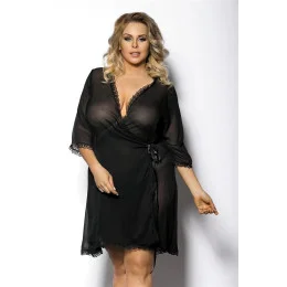 Tento nadčasový a výnimočne zmyselný dizajn značky Anais Apparel je skvelou ponukou pre milovníčky účinnej a zároveň univerzálnej spodnej bielizne plus size. Zvodný župan ISLLA je dokonalým nápadom, ako šikovne zakryť všetky nedostatky na tele a dodať erotickému desu zaujímavý nádych. Štýlový župan s čipkovaným lemovaním bol vyrobený z mäkkého a hladkého materiálu v klasickej čiernej farbe, ktorý sa krásne prispôsobí ženskej postave. Voľný strih, pohodlné šnurovanie vpredu, trojštvrťové rukávy a obálkový výstrih zaručujú voľnosť pohybu, akúkoľvek úpravu spôsobu nosenia a zvodné zvýraznenie pŕs. Jemné priehľadné časti zaručujú zvýraznenie najväčších predností ženského tela.