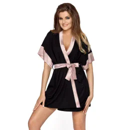 Štýlový župan s módnym kimonovým strihom. Vyrobené z mäkkej viskózy. Zdobí ich saténové lemovanie a saténový opasok, ktorý zároveň zvýrazňuje pás. Vyzerá nesmierne zaujímavo a nesmierne žensky. Zabalené v peknej značkovej krabici.