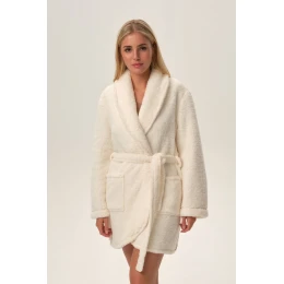 Hrejivý svetlý župan Fune bude rozmaznávať vašu pokožku a príjemne vás zahreje aj počas chladných sivých rán. Tento elegantný model s dĺžkou do polovice stehien možno kombinovať s nočnou košeľou alebo pyžamom a do priestranných vreciek ľahko uložíte gumičky do vlasov a iné užitočné doplnky.