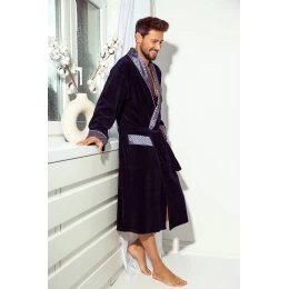 Stylový a luxusní župan pro výjimečného muže. Klasický střih s vázáním v pase a ozdobným lemováním v retro stylu. Délka ke kolenům. Šálový límec a kapsy - praktické a půvabné! Župan vám jistě bude sloužit dlouho. Skvělá velurová tkanina. Složení: 80 % bavlna, 20 % polyamid.