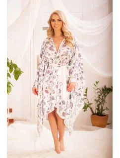 Elegantný saténový župan vo svetlo béžovej farbe. S 3/4 rukávmi, zdobené zaujímavou kvetinovou potlačou. Najnovší návrh Donny. Spolu s tričkom alebo pyžamom z rovnakého radu vyzerá jednoducho fenomenálne.