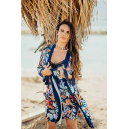 Vzdušný župan s 3/4 rukávmi v energickom kvetinovom vzore je ideálnou voľbou pre tých, ktorí hľadajú jedinečne ženský kúsok do svojej zbierky nočnej bielizne. Župan poskytuje ľahkosť a voľnosť pohybu a vďaka dynamickým kvetinovým vzorom dodáva nádych romantiky a elegancie. Župan bol navrhnutý a ušitý v Poľsku. Starostlivý dôraz na detail a vysoká kvalita spracovania sú zárukou trvanlivosti a pohodlného nosenia.