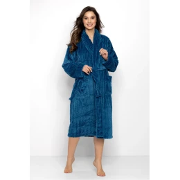 Elegantný ženský župan, ktorý spája štýl a pohodlie v jednom. Navrhnutý s ohľadom na každodenné používanie, skvele poslúži ako praktické domáce oblečenie, tak aj ako elegantný darček vďaka módnej farbe a vysokej kvalite spracovania. Model s dlhými rukávmi zakončenými manžetami predstavuje klasický štýl, a praktické vrecká mu dodávajú funkcionalitu. Šnúrka v páse umožňuje perfektné prispôsobenie postave, zabezpečí pohodlné nosenie. Materiál s nízkou krehkosťou zaručuje trvanlivosť a estetický vzhľad po dlhú dobu. Župan je balený v elegantnom vrecku, čo z neho robí skvelý darček. Navrhnutý a ušitý v Poľsku s dôrazom na každý detail, predstavuje ideálnu voľbu pre ženy, ktoré si cenia módny vzhľad a pohodlie v každodennom živote.