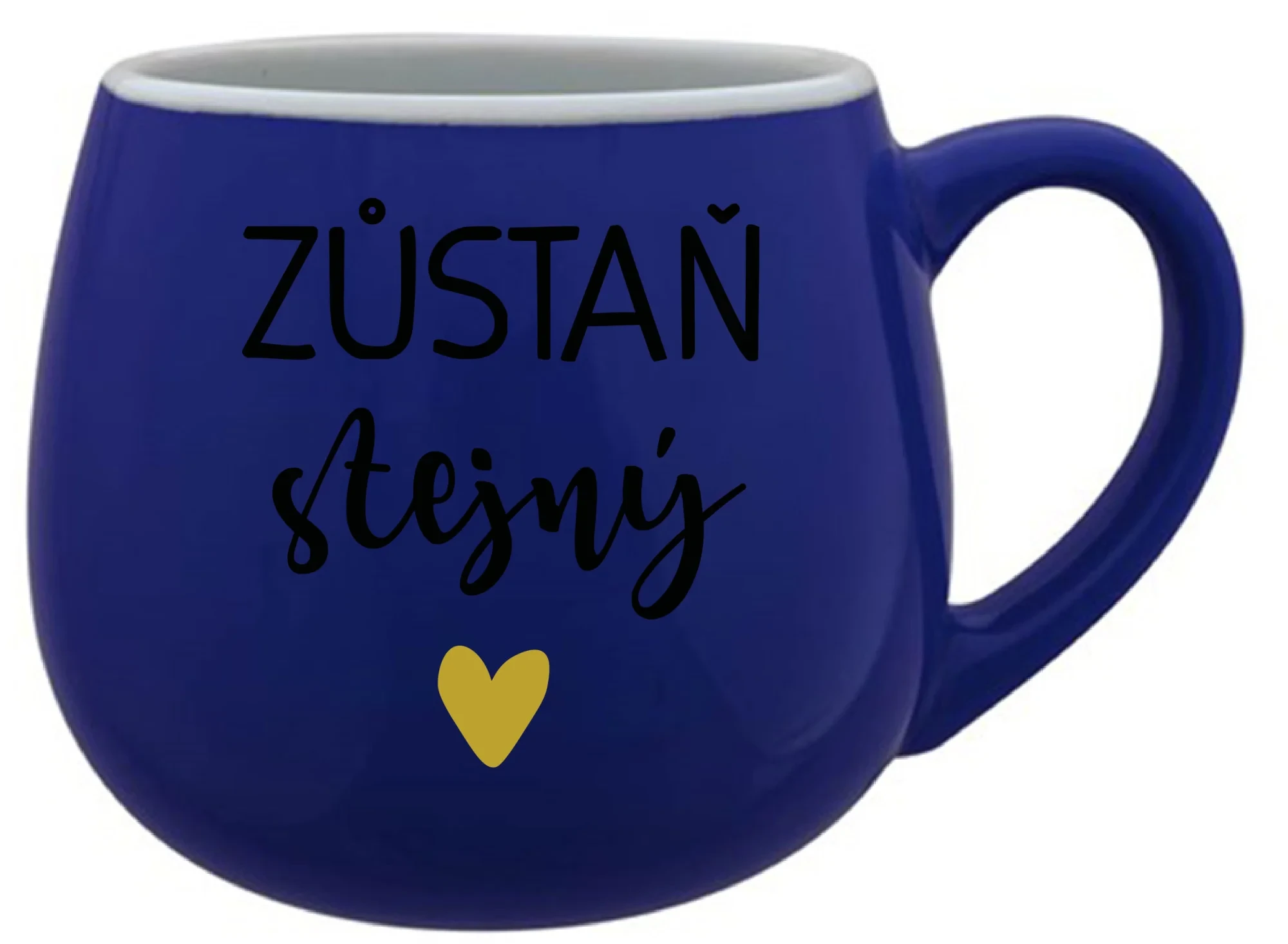 ZŮSTAŇ STEJNÝ - modrý keramický hrníček 300 ml